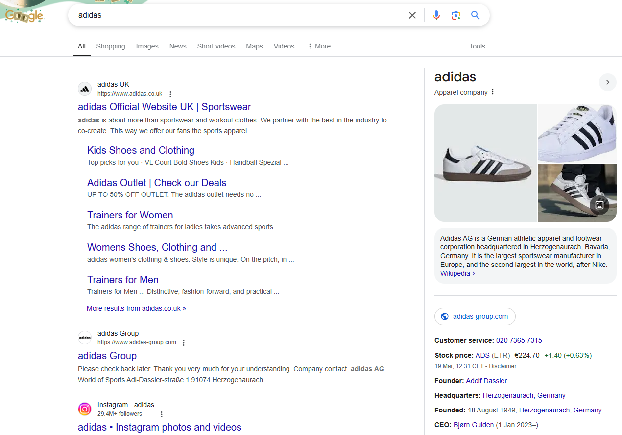 Brand + product/location searches now this is where clear intent is shown by a user e.g. adidas running shoes they are showing a very clear intent towards a certain product.